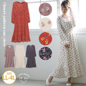 Vネック 長袖 マキシ丈 ティアードワンピース