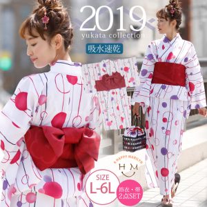 吸水速乾生地のモダンレトロドットストライプ浴衣