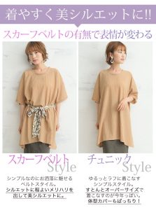 ゆったりシルエットと程よいロング丈で体型カバー。