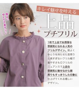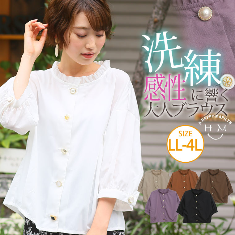 色々ボタン プチハイ バックシャーリング 5分袖 ブラウス ゆったりサイズで体型カバー◎ バランスよく着こなすコンパクトな丈感がポイント!! ★サイズ:LL~4L ¥2,990(税込)