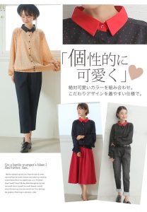 配色 長袖 ドット ブラウス 配色デザインの襟がアクセントに。 ちょっぴりレトロなデザインが魅力の1枚。 ★サイズ:L~8L ¥3,090(税込)