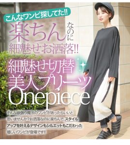 ほっそり魅せ 美人な サイドプリーツ ワンピ