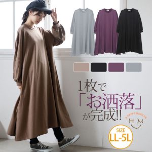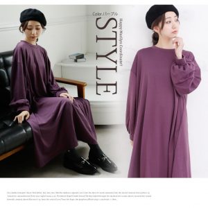 ミニ裏毛 Aライン 長袖 ロングワンピース