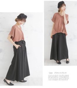 共布リボンベルト付き ワイドパンツ の セットアップ