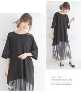 ジャカード天竺素材 袖レース切替 六分袖 プルオーバー