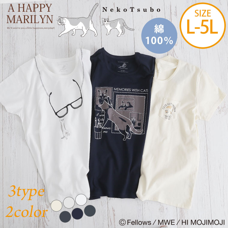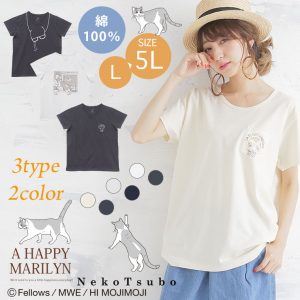 NekoTsubo コットン100% 3タイプから選べる!! ネコプリント 半袖 Tシャツ 綿100%の優しい肌触りで着心地抜群。 シンプルで使いやすいプリントデザインでコーデのアクセントに。 ★サイズ:L~5L ¥2,158(税込)