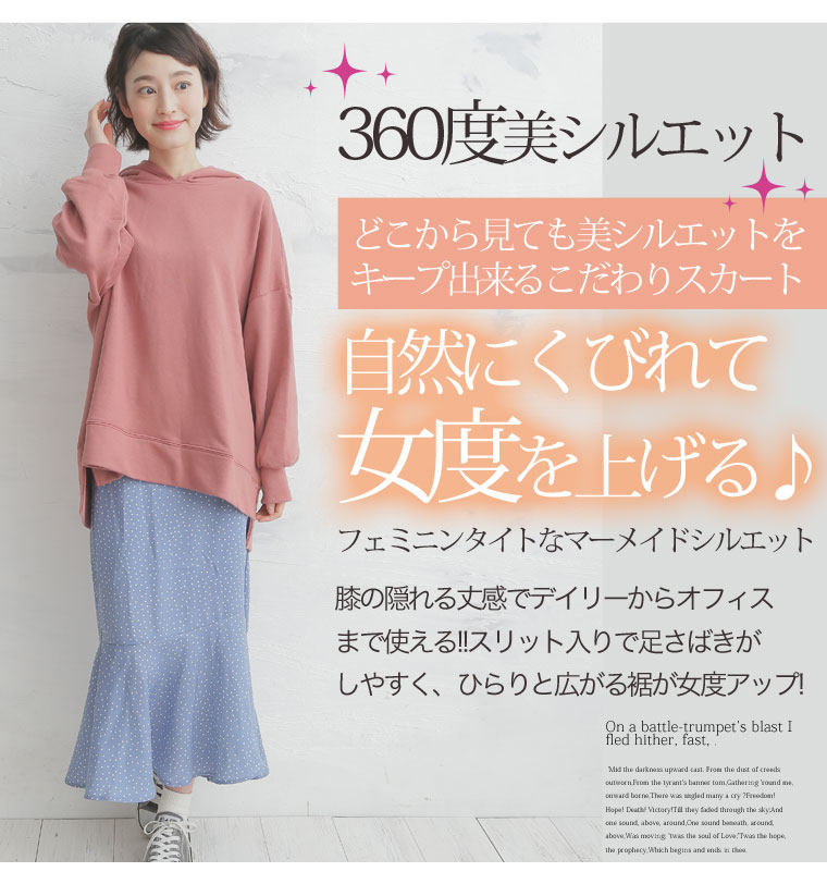 ジョーゼット ランダムドットpt 前スリット アシンメトリー スカート