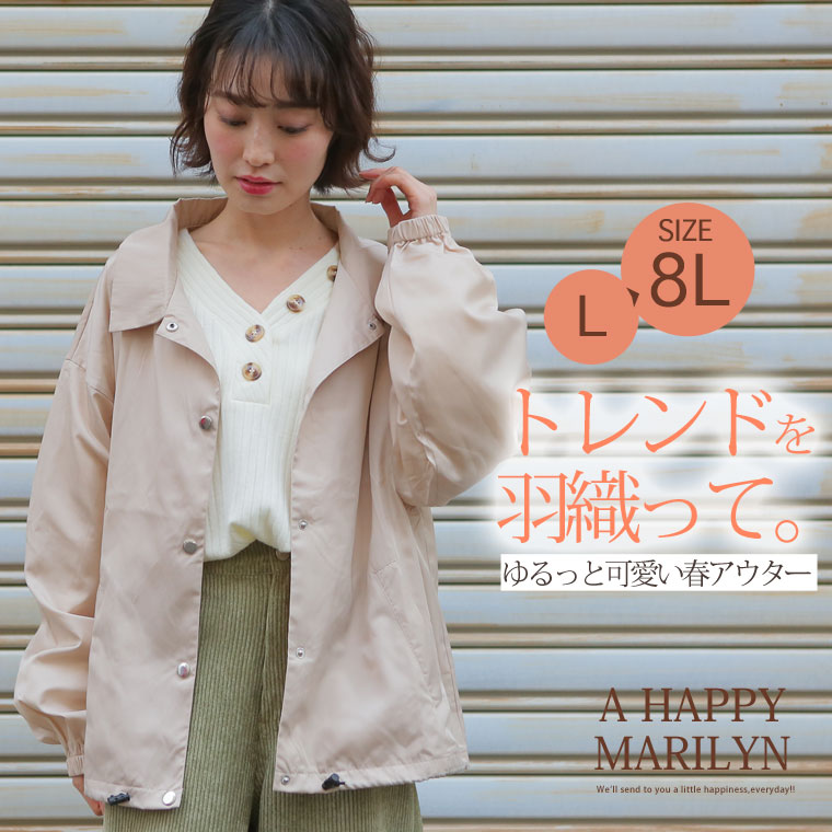 ゆったりサイズでトレンドスタイル♪裾ドロストコーチジャケット。 ★サイズ:L~8L ¥2,990(税込)