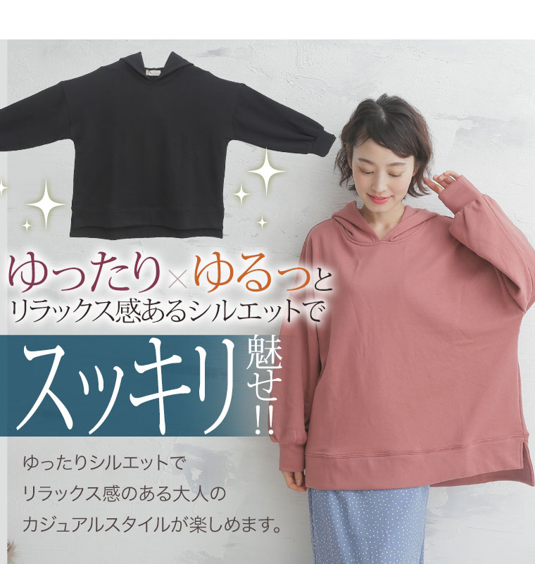 ゆったりシンプルデザインですっきり着こなす!!お洒落定番パーカー。