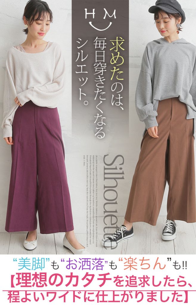 程良い ワイドの 美シルエット センタープレス ピーチ ワイドパンツ