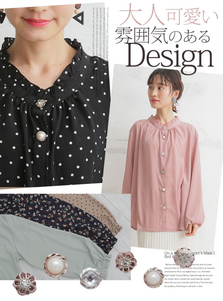無地と柄から選べる! 色々ボタン プチハイ ブラウス