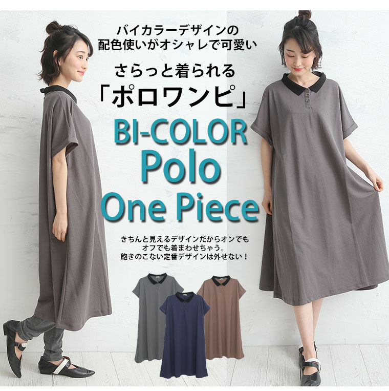 ゆるっと 楽ちん Aライン クレリック 衿 カノコ ポロ 半袖 ワンピース