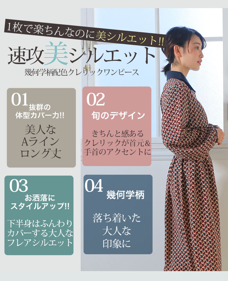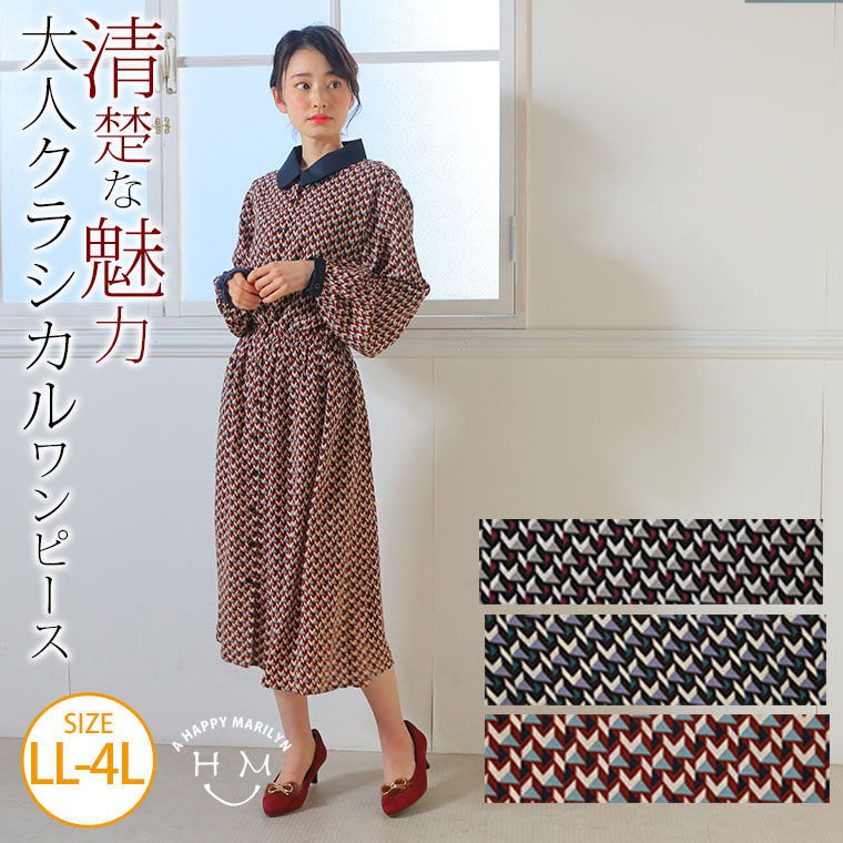 洗練レトロなワンピース。 ★サイズ:LL~4L ¥3,990(税込)