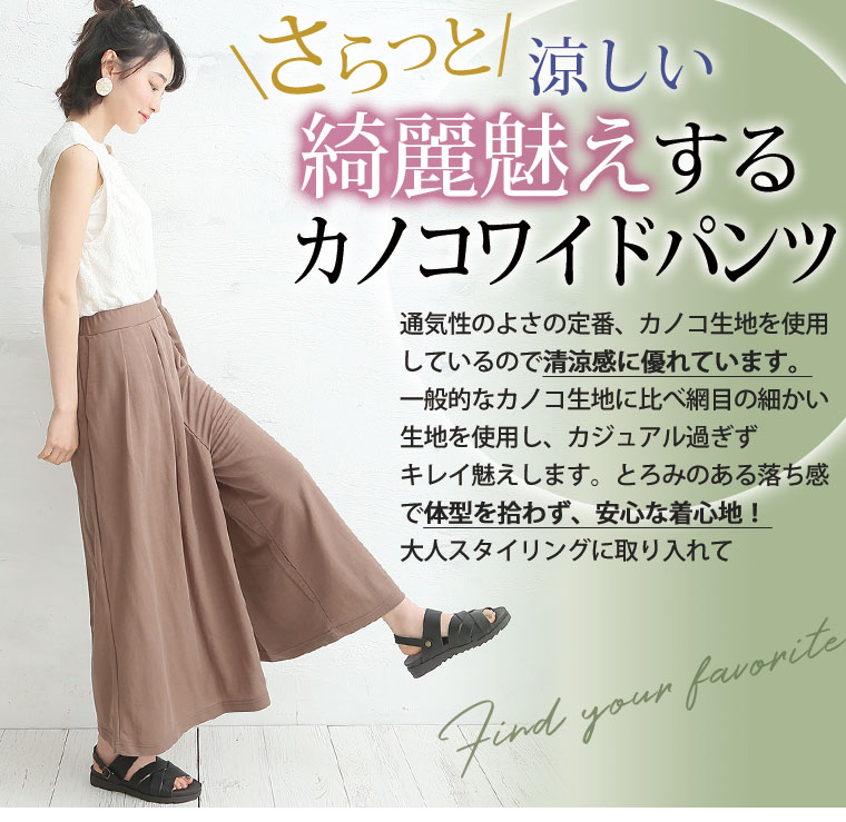 さらっと涼しい、綺麗魅えするカノコワイドパンツ。 ★サイズ:LL~4L ¥3,490(税込)
