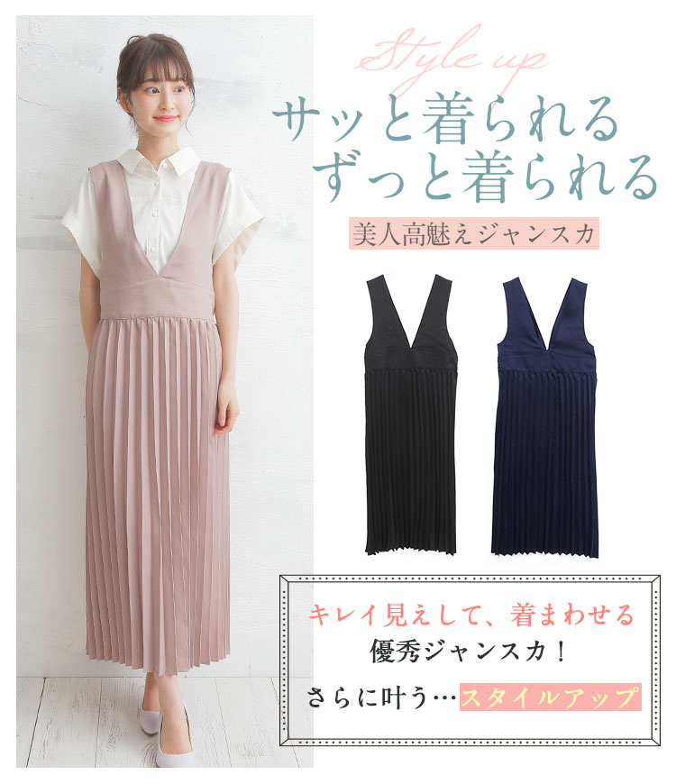 美人ジョーゼット バックゴム プリーツ ジャンパースカート