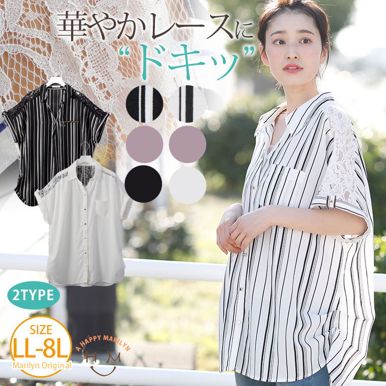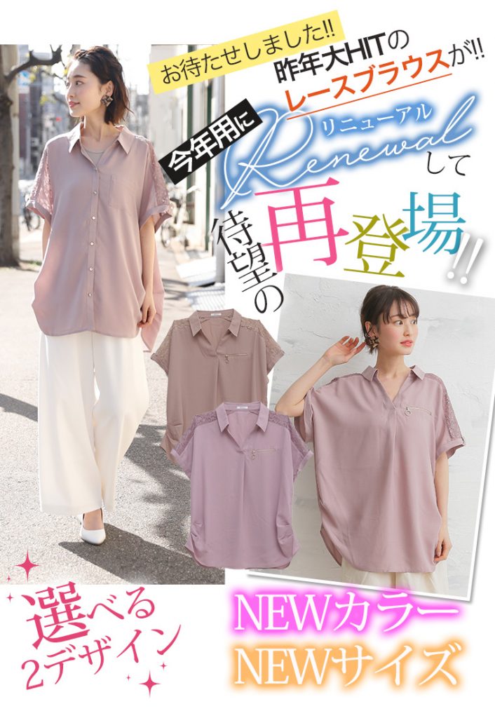 2typeから選べる!! 半袖 肩レース シャツブラウス