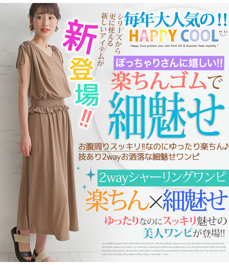 HAPPY COOL お肌を守る嬉しい7つの機能! UV・接触冷感 お腹周りスッキリ! 2WAY 半袖 ロングワンピース