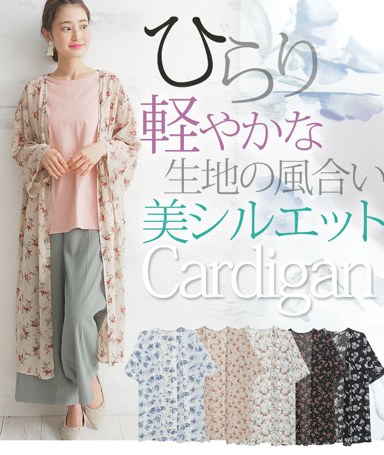 選べる花柄 シフォン 長袖 ロングカーディガン