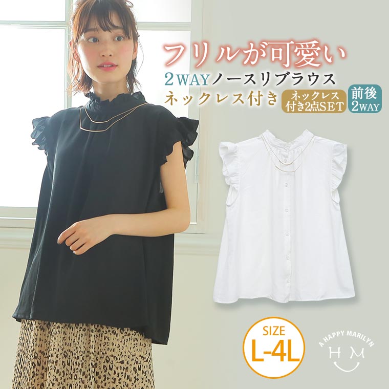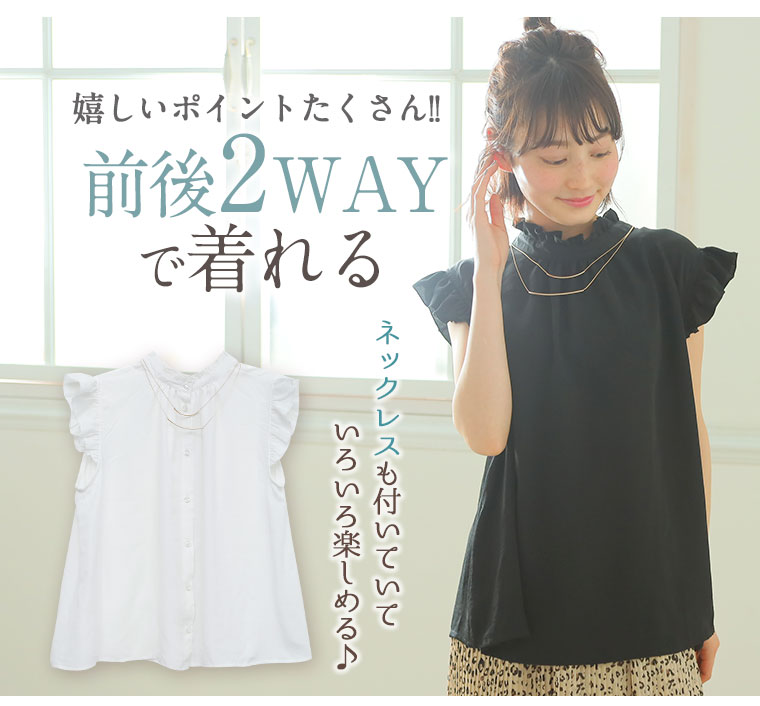 ネックレス付き 前後2WAY フリル ノースリーブ ブラウス