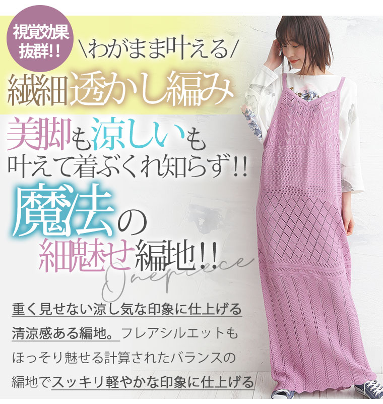【新作◆5月10日販売】 さらりと心地よい 涼やか 透かし編み 美人 ロング ワンピース