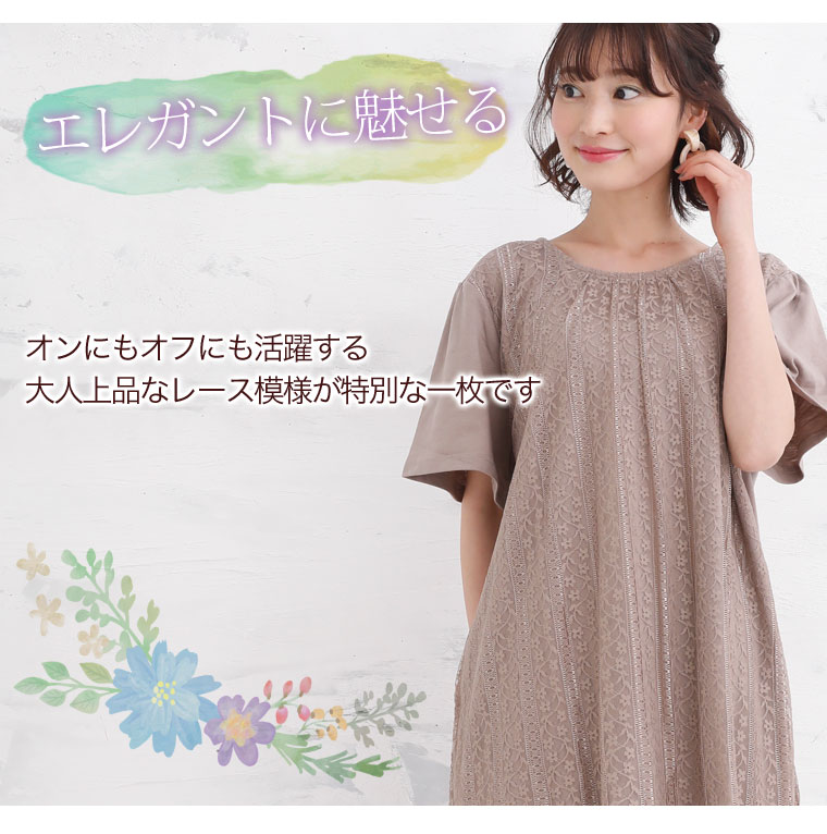 上品で可愛いレースが縦ラインを強調してくれるからスッキリ見える◎ ★サイズ:L~5L ¥2,190(税込)