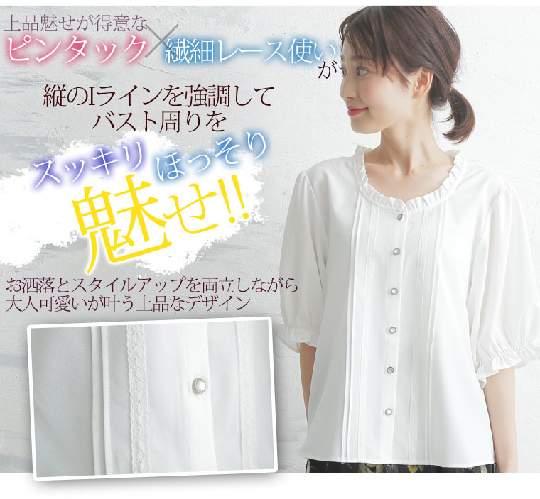 レースとピンタックの組み合わせが上品♪使いやすいカラーを3色ご用意しました。 ★サイズ:LL~4L ¥2,990(税込)