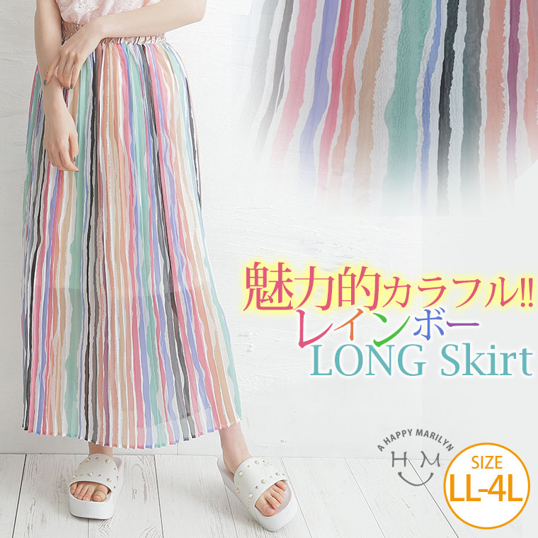 一枚で即主役級!明るく揺れるレインボーロングスカート。 ★サイズ:LL~4L ¥4,390(税込)