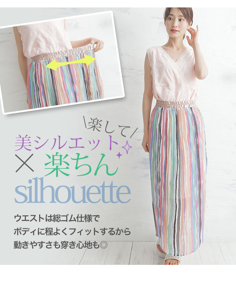 【新作◆5月21日販売】 ジョーゼット レインボー プリント 86丈 プリーツ スカート