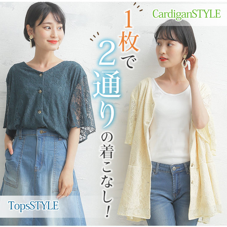 【新作◆6月26日販売】 フレア袖 レース ブラウス フロントタックデザインでゆったり着こなす。