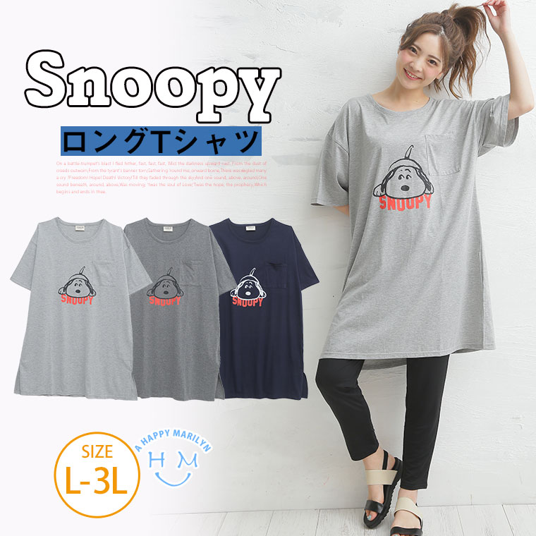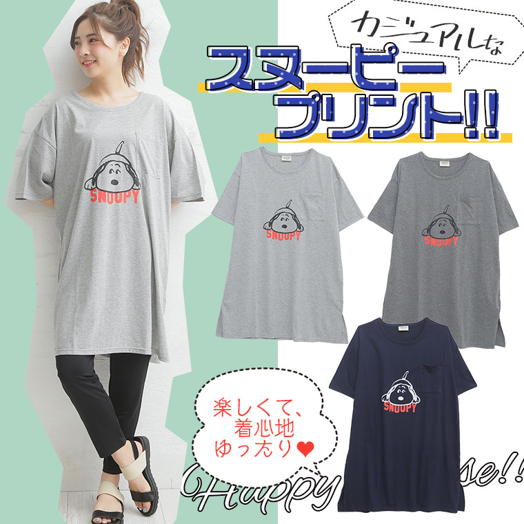 カジュアルかわいいスヌーピーがポイント!ロングTシャツ。 ★サイズ:L~3L ¥1,620(税込)
