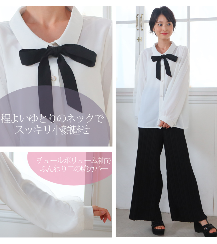 【新作◆8月24日販売】 2way 上品華やか! ソフトジョーゼット シアー ボリューム袖ブラウス