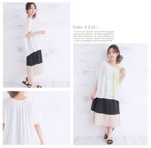半袖 ドルマンスリーブ 水彩風 カットソー