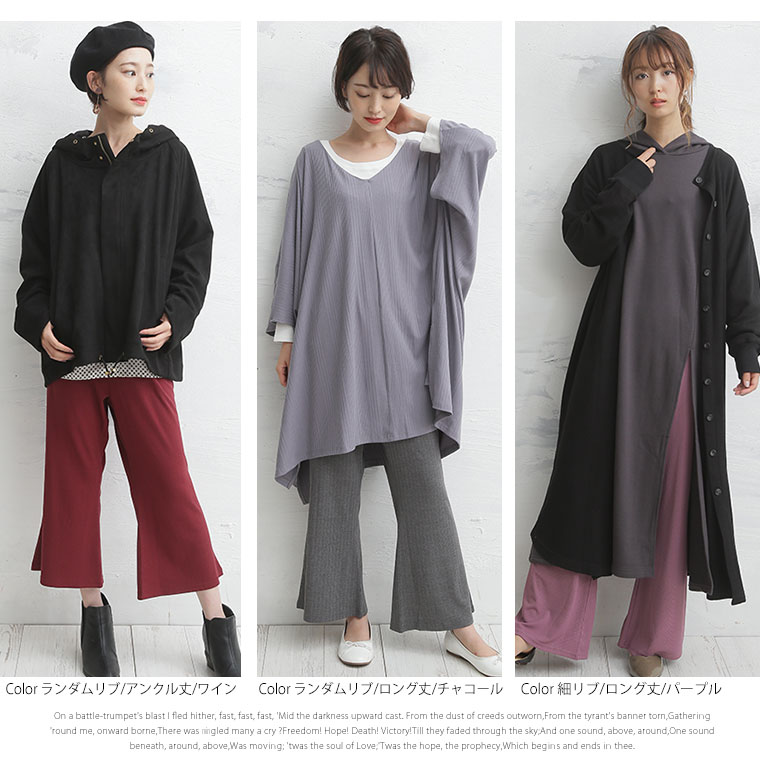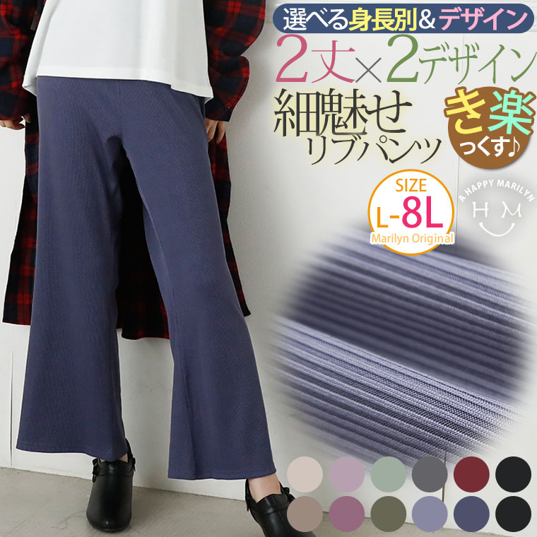 【新作◆9月16日販売】 選べる2丈&2素材 ゆったりなのに細魅せ! き楽っくす リブ セミワイドパンツ