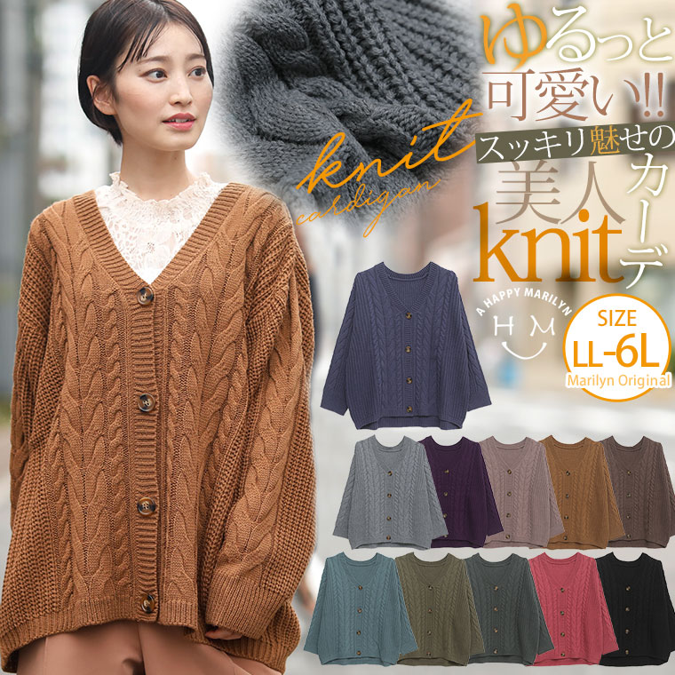 【新作◆9月16日販売】 ゆるっと可愛い スッキリ魅せの美人 ケーブルニット柄 長袖 カーデ