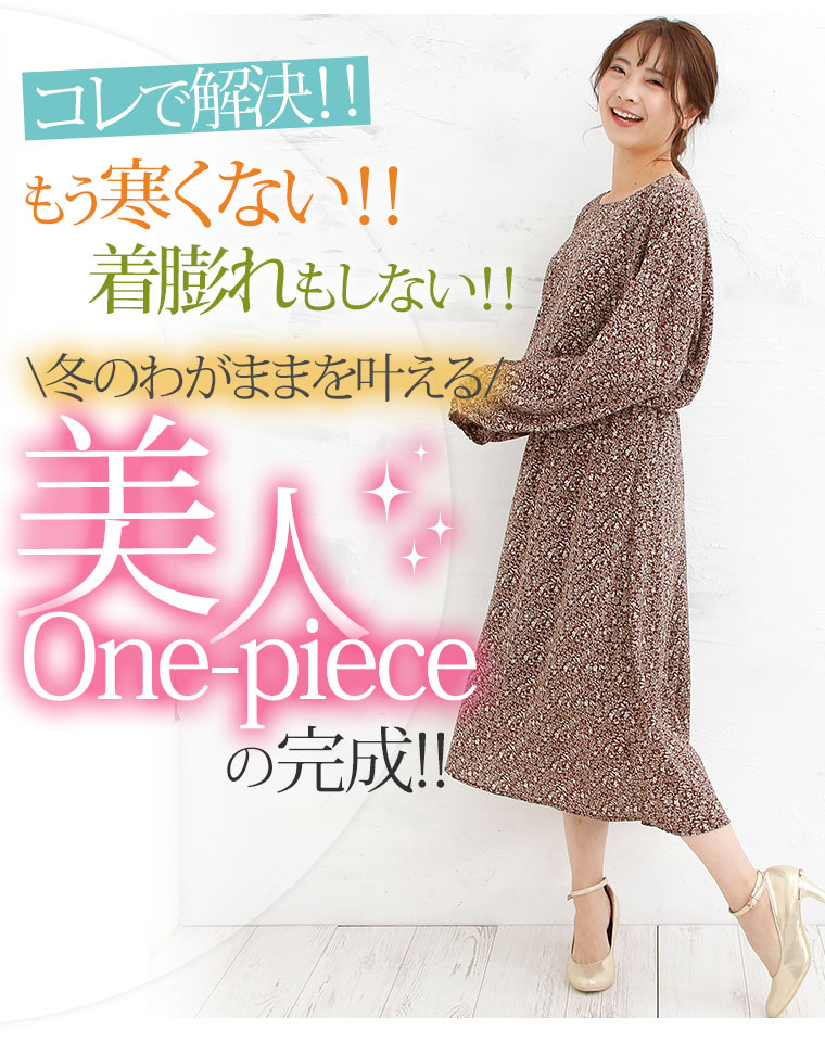 【新作◆10月7日販売】 もう寒くない! 裏フリース シフォンワンピース