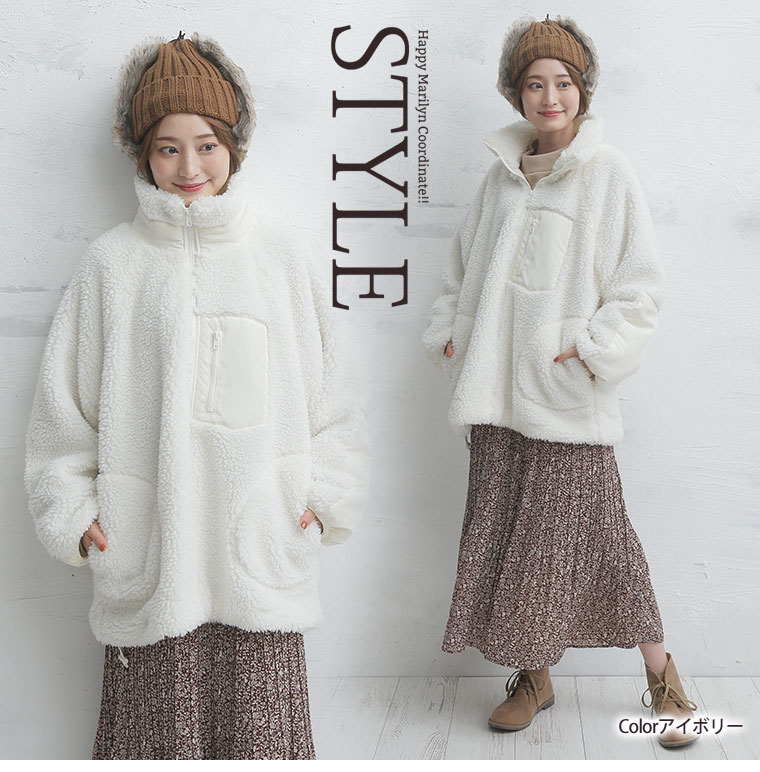 スタンドカラーラグランボアコート。 ★サイズ:L~6L ¥3,990(税込)