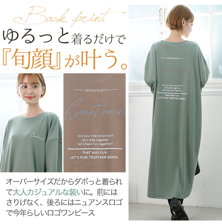 【新作◆10月23日販売】 T/C裏毛 スウェット バックロゴ ワンピース