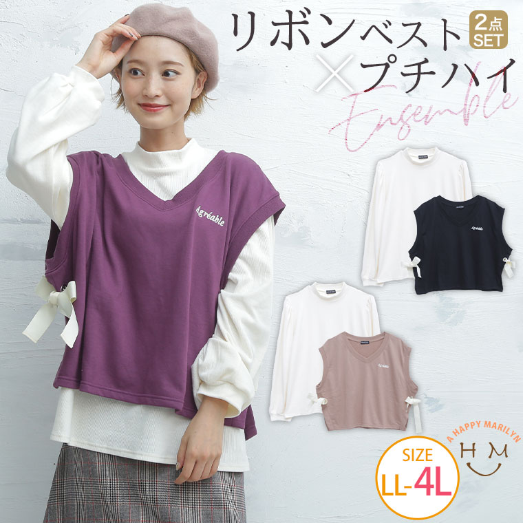 リボンベストとプチハイトップスのアンサンブル。 ★サイズ:LL~4L ¥3,990(税込)