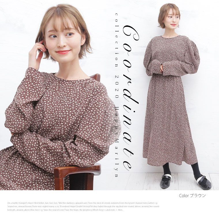 【新作◆11月25日販売】 デシン 小花柄プリント パワショル ロングワンピース OHS