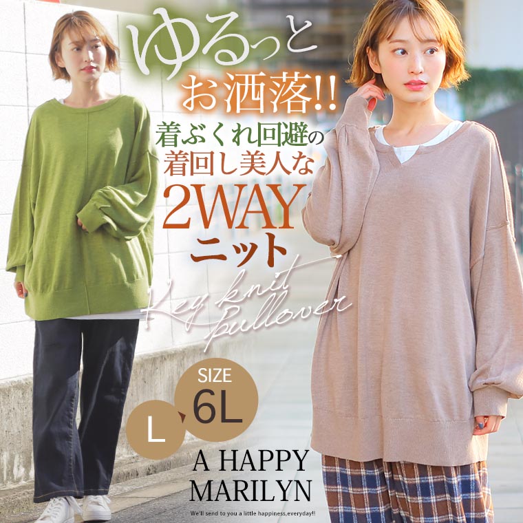 華奢魅せ×スッキリIラインで縦長美シルエット!ゆるっとラフに2WAYキーネックプルオーバー。 ★サイズ:L~3L ¥2,490(税込)