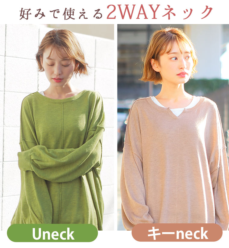 【新作◆1月6日販売】 ゆるっと華奢魅せ 着ぶくれ回避の 前後2WAY キーネック ニット プルオーバー