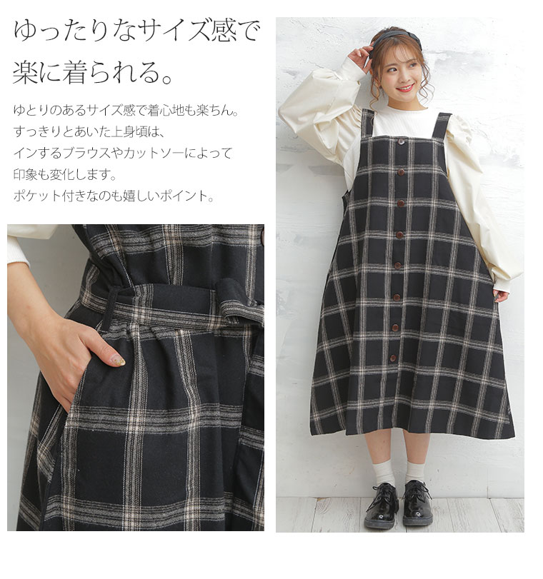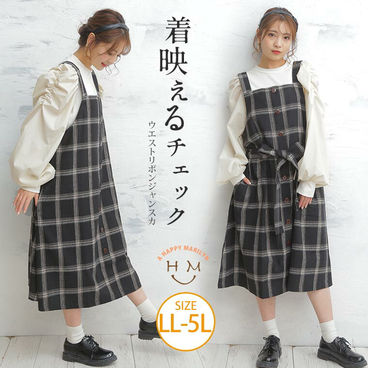 チェック柄が魅力的なウエストリボンジャンスカ。 ★サイズ:LL~5L ¥1,980(税込)