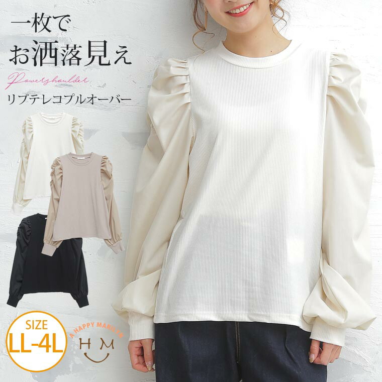 華やかなボリューム袖が魅力的。リブテレコプルオーバー。 ★サイズ:LL~4L ¥2,490(税込)