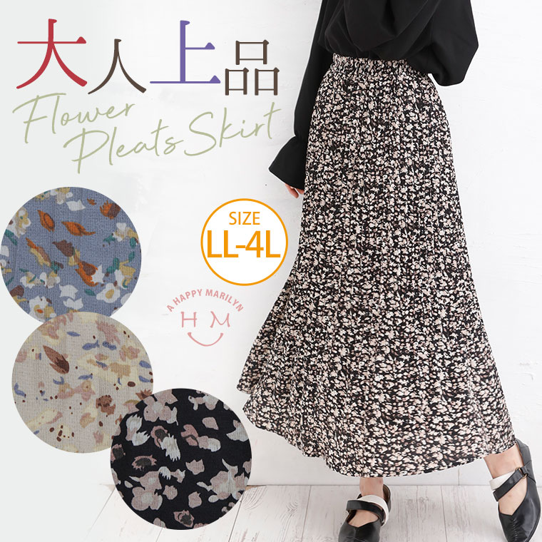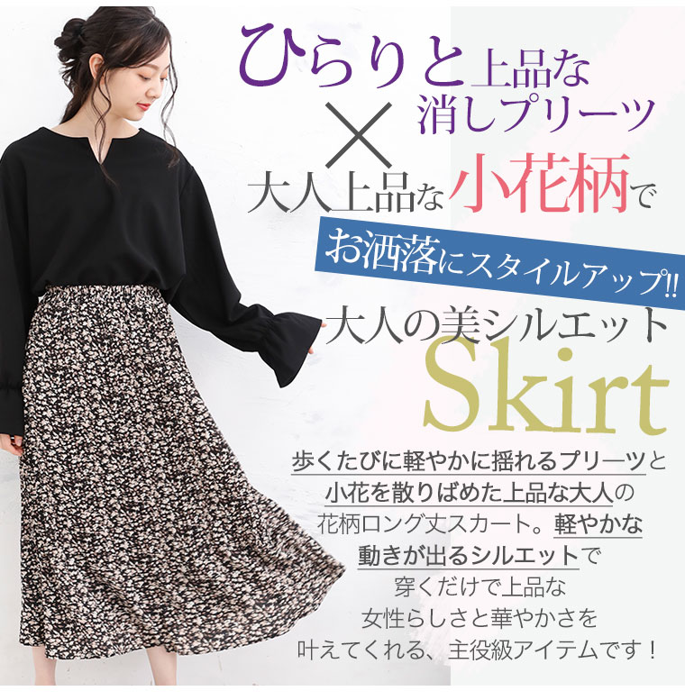 上品な小花柄プリント!大人消しプリーツロングスカート。 ★サイズ:LL~4L ¥4,290(税込)