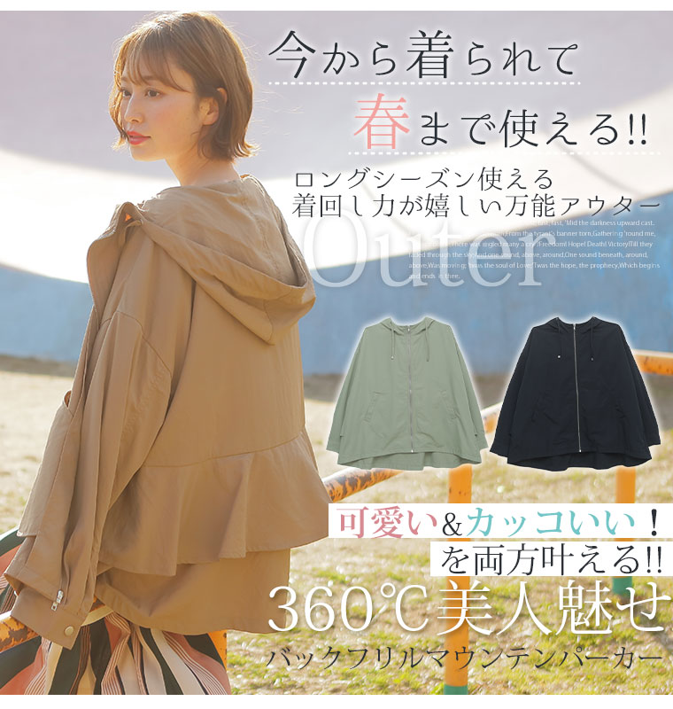 360度美人魅せ! バックフリルマウンテンパーカー。 ★サイズ:3L~6L ¥4,389(税込)