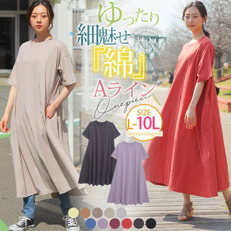 汗ばむシーズンを快適に過ごせる 綿100% ワンピース。 ★サイズ:L~10L ¥1,980(税込)