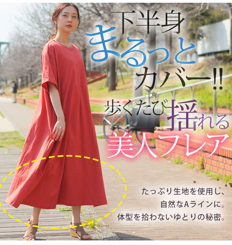 【新作◆4月5日販売】 コットン100% 細魅せ Aラインワンピース