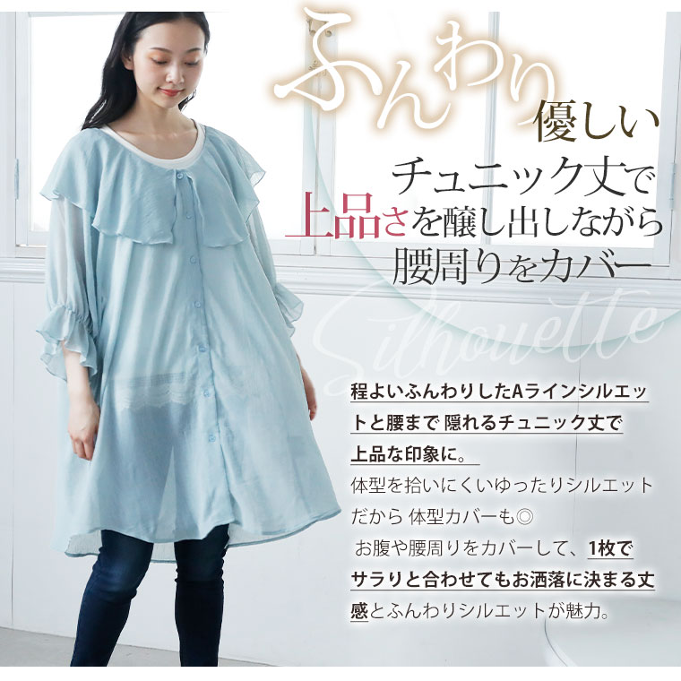 【新作◆5月31日販売】 楊柳 シフォン ラッフル チュニック ブラウス