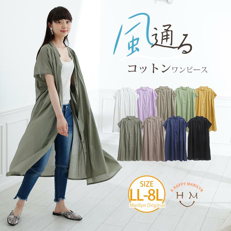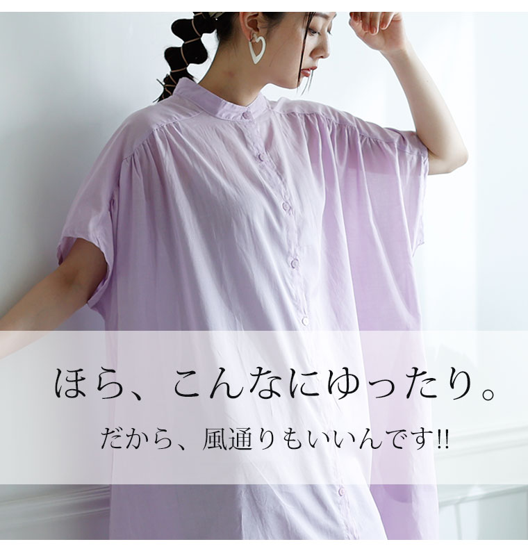 【新作◆6月10日販売】 風通る!! さらり コットン100% スタンド襟 ワンピース