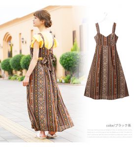 エスニックストライプ ロング丈 バックリボンワンピース